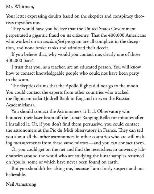: Amazing. Neil Armstrong responding to a teacher who was skeptical about the moon landing.