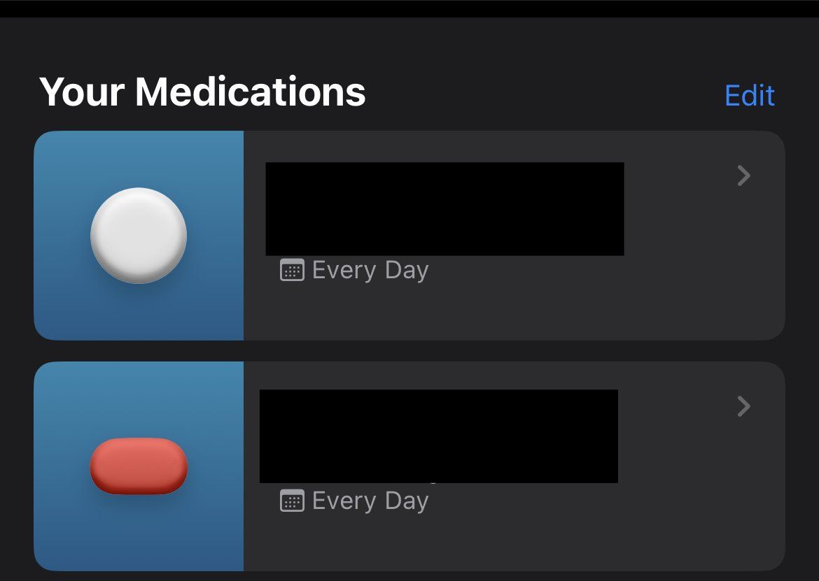 The new medication tracker in iOS 16 needs to let you scale the pills. These are so very backwards in relative size.