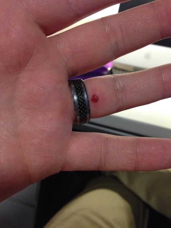 Unknowingly injured myself at hockey today at lunch. This is why I normally take off my ring to play.