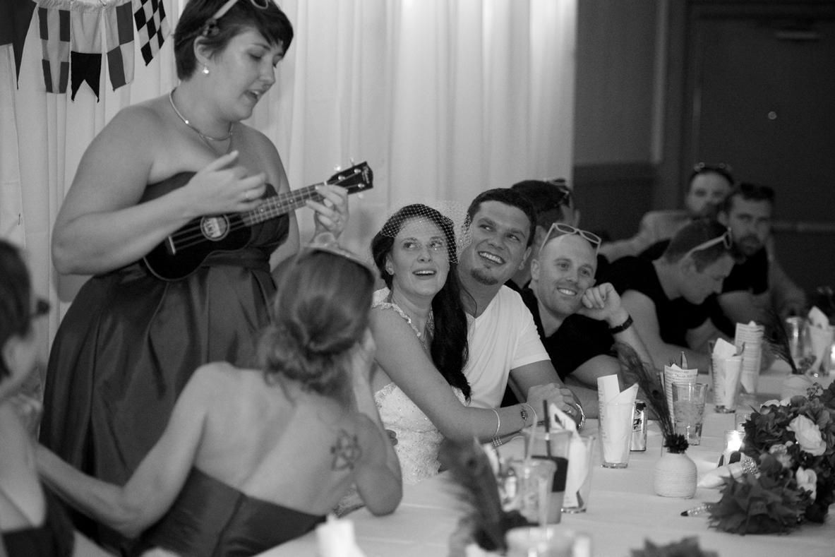 killing with her speech/song. Best man looking a little worried.