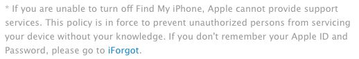 Seems Apple's explanation for why you have to turn off Find My iPhone is it authenticates you as the owner.