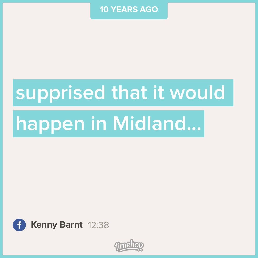 Anyone have thoughts about what uncharacteristic thing happened in Midland 10 years ago today? I don't remember.
